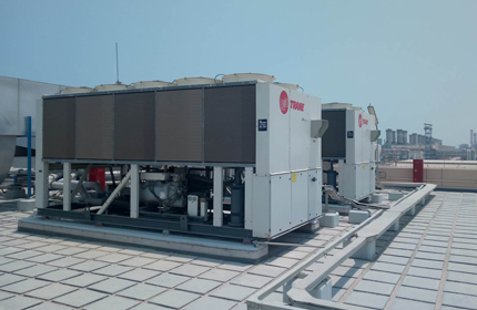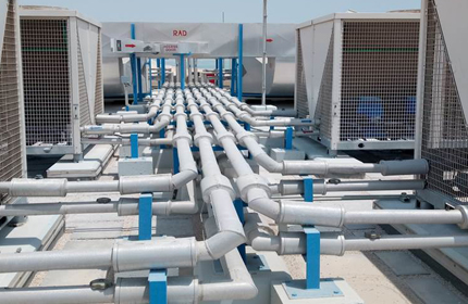 HVAC system mainly consists of 10 no. Air Cooled Chillers each 340 tons, supplying Data Centers and electrical rooms located in the buildings. Heat Exchangers connected to Marafiq supplying basement lobbies and offices areas. Ventilation system with car park exhaust fans, smoke and pressurization fans.