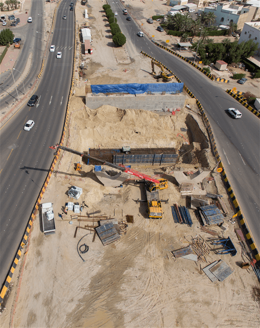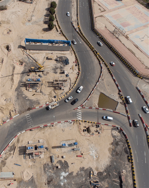 Description: Upgrading of existing signalized intersections into wide roundabouts, Construction of six flyovers J7 to J12, Construction of seven footbridges F2 to F8, Renovation and maintenance of Al Ghouse networks and roads paving between intersections and Construction of new services (ITS, Telephone, Fresh water, etc.)